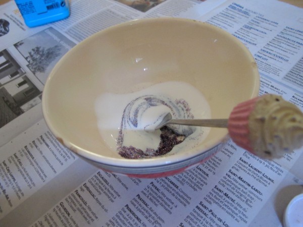 Dans le bol, mélanger de la colle avec une bonne dose de paillettes