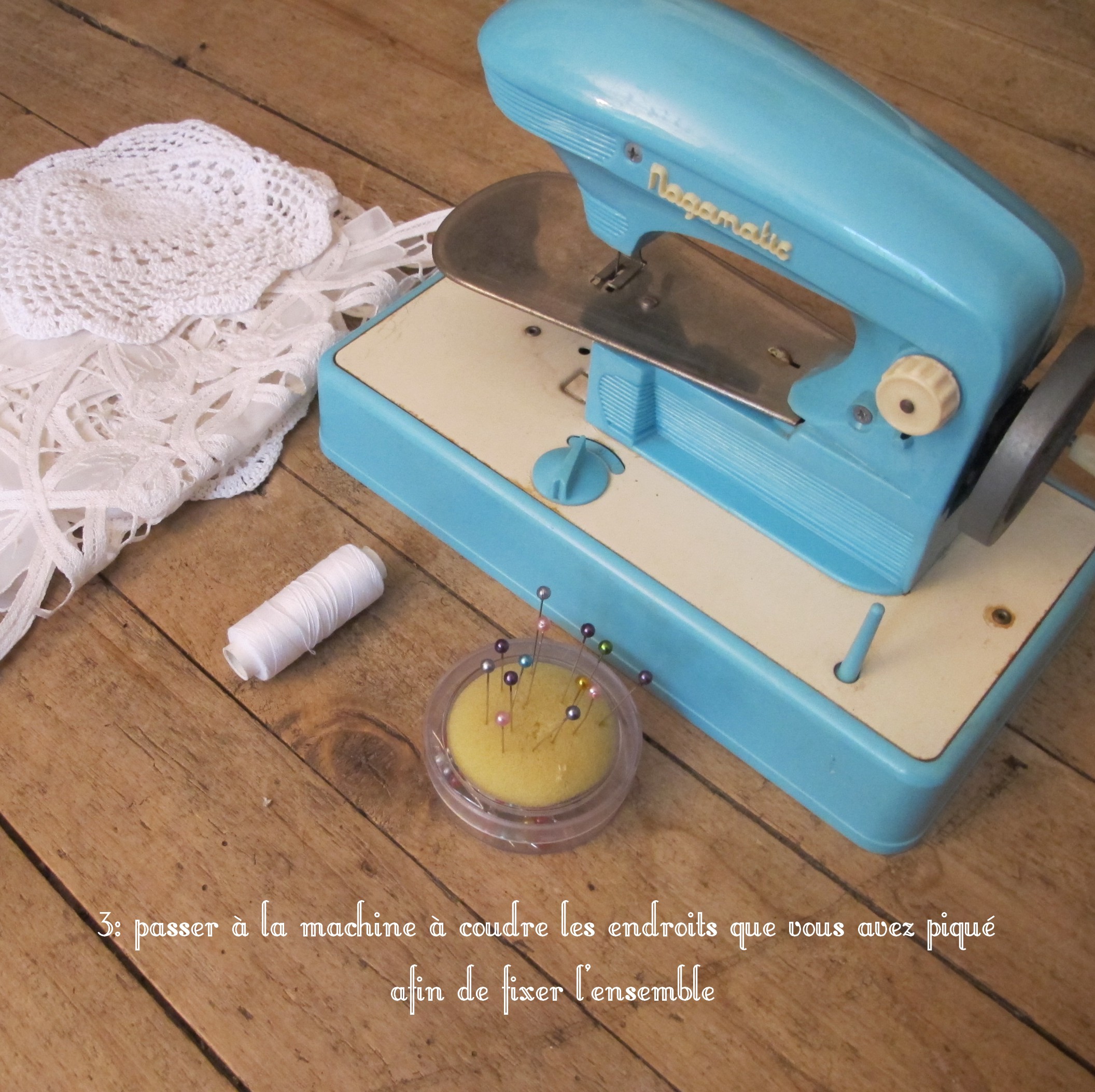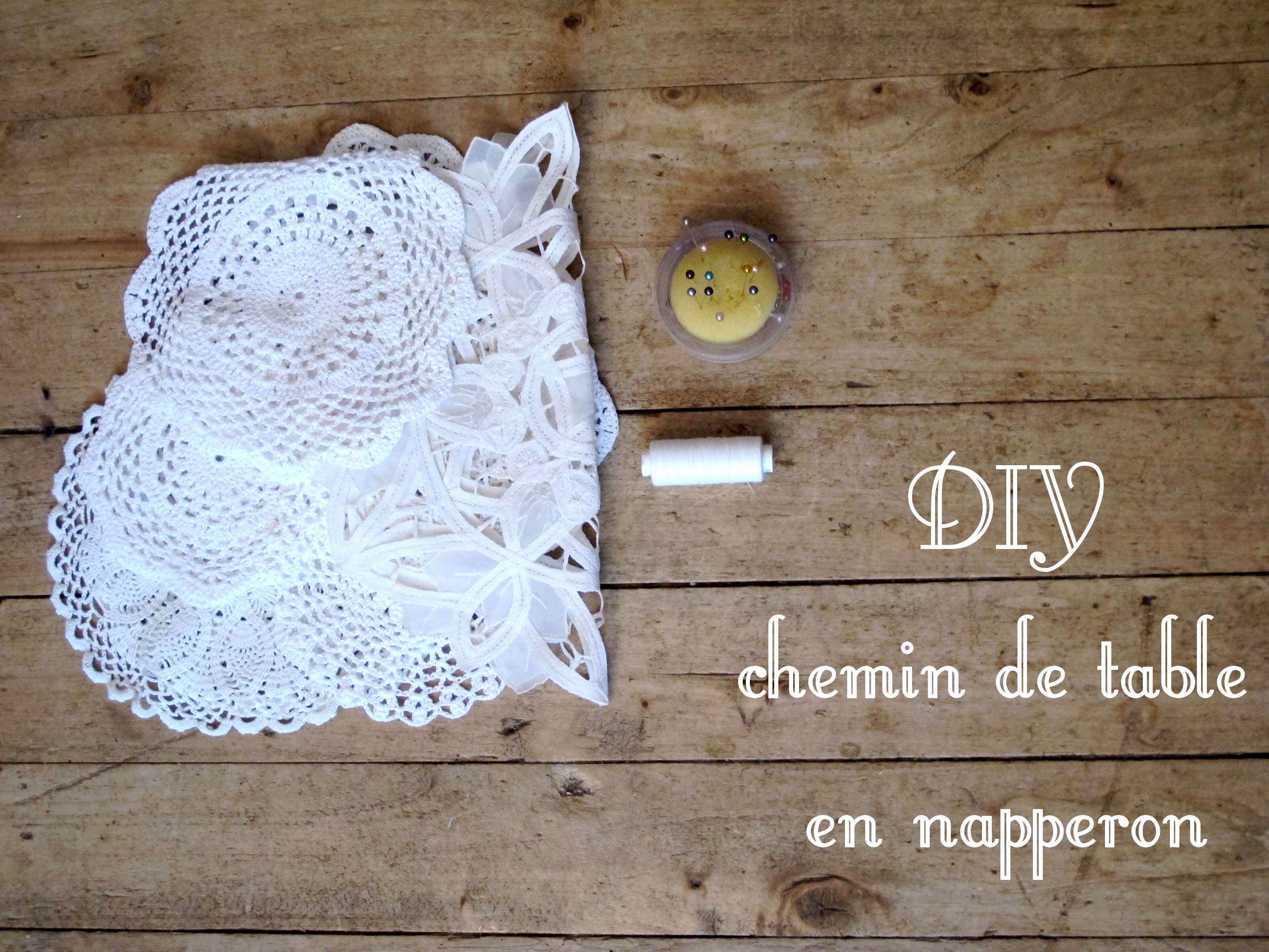 Je vous propose de réaliser un chemin de table en napperon. Objet original, unique et à grande valeur sentimentale si vous le réalisez avec les napperons de vos grands mères ou tantes, sinon pas de stress si mémé et tata n’en n’ont pas, faites un tour dans les vides greniers ou chez Emmaus, vous devriez trouver votre bonheur? Et au pire du pire, si vraiment, toujours rien, faites un tour chez Gifi, j’en ai déjà aperçu au rayon « mercerie ».