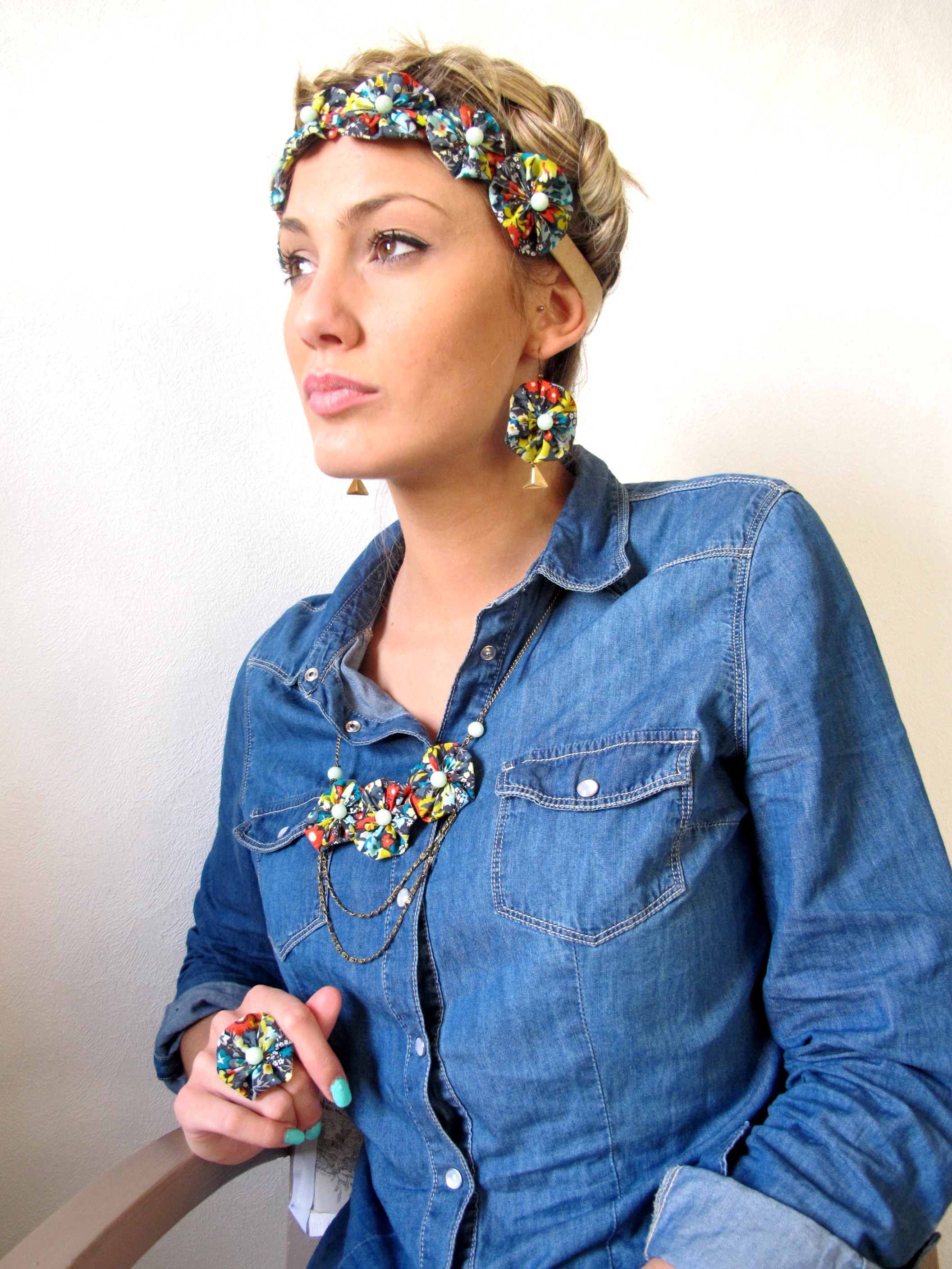 Headband, boucles d’oreilles, bague, collier: collection Lola