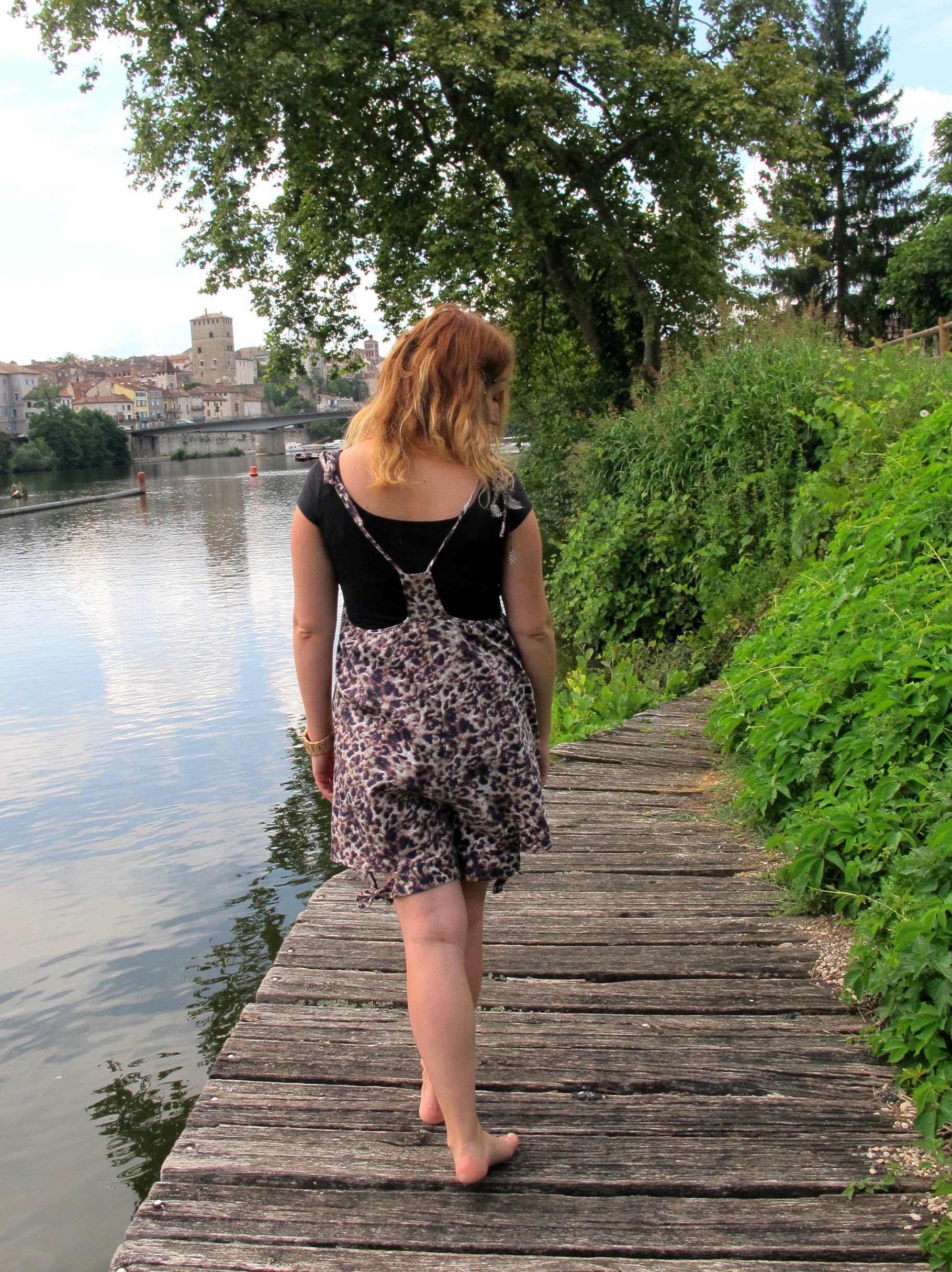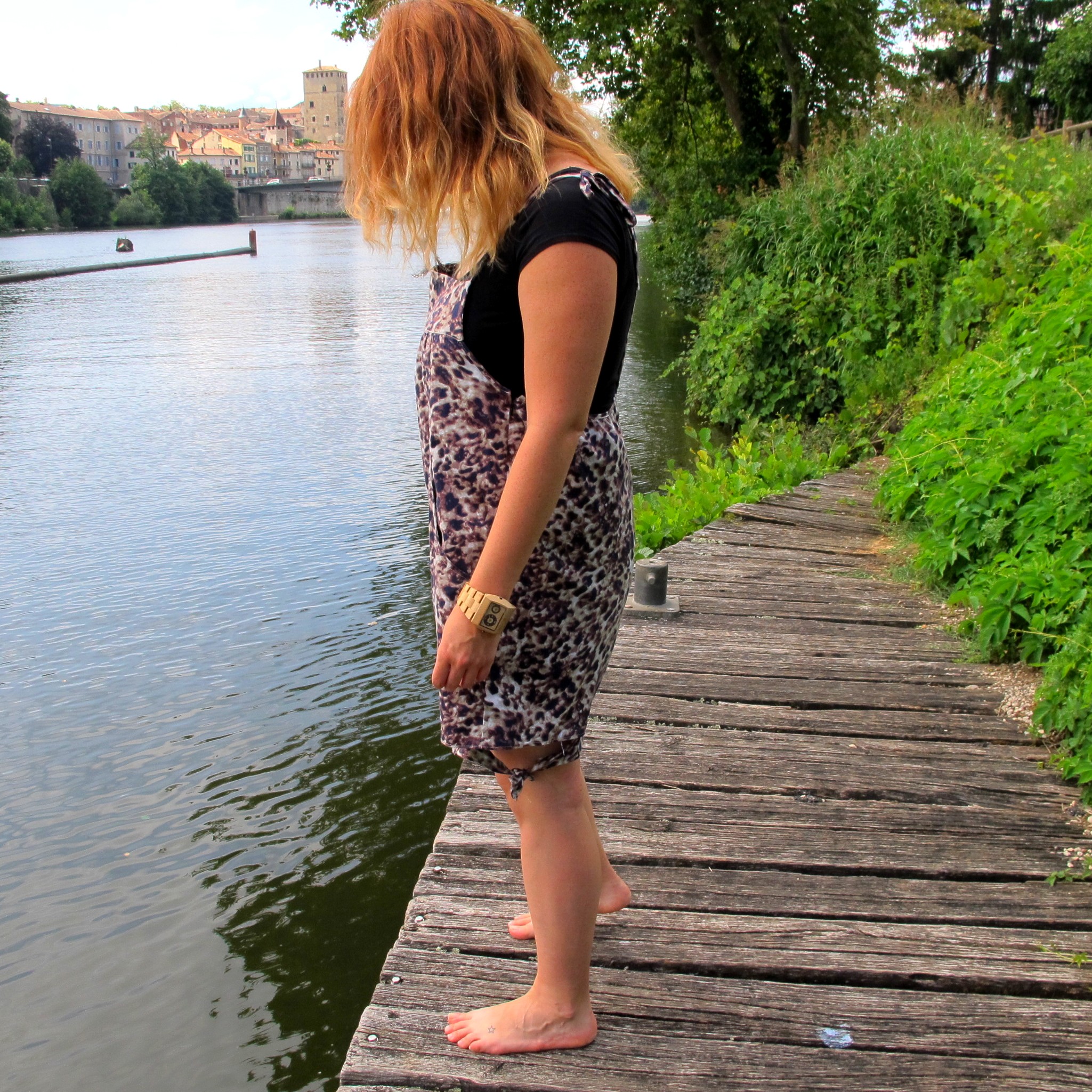 Quelle saison vous inspire le plus pour vous habiller? Qui vous donne des ailes et où vous vous permettez le plus de fantaisie? Pour moi c’est l’été, j’aime le fait de ne pas avoir ses fringues planqués sous un manteau, que tout le monde puisse voir votre tenue. C’est la saison aussi qui m’inspire le plus de fantaisie coté imprimé. Comme pour cette combishort imprimé léopard, avec une coupe originale, elle et moi c’était une évidence! Enfin après quelques coups de ciseaux et un passage sous la machine à coudre pour tout vous dire. Lorsque je l’ai vu en rayon l’été dernier j’ai craqué sur son imprimé mais la longueur me dérangeait, bouffante et resserrée à mi-mollet… euuuuh! Eh oh Zoé (la fée), c’est quoi ce délire?! Bref, je l’ai coupé en short et là, le bonheur, l’amour, les oiseaux qui chantent, toussa toussa tu vois quoi!