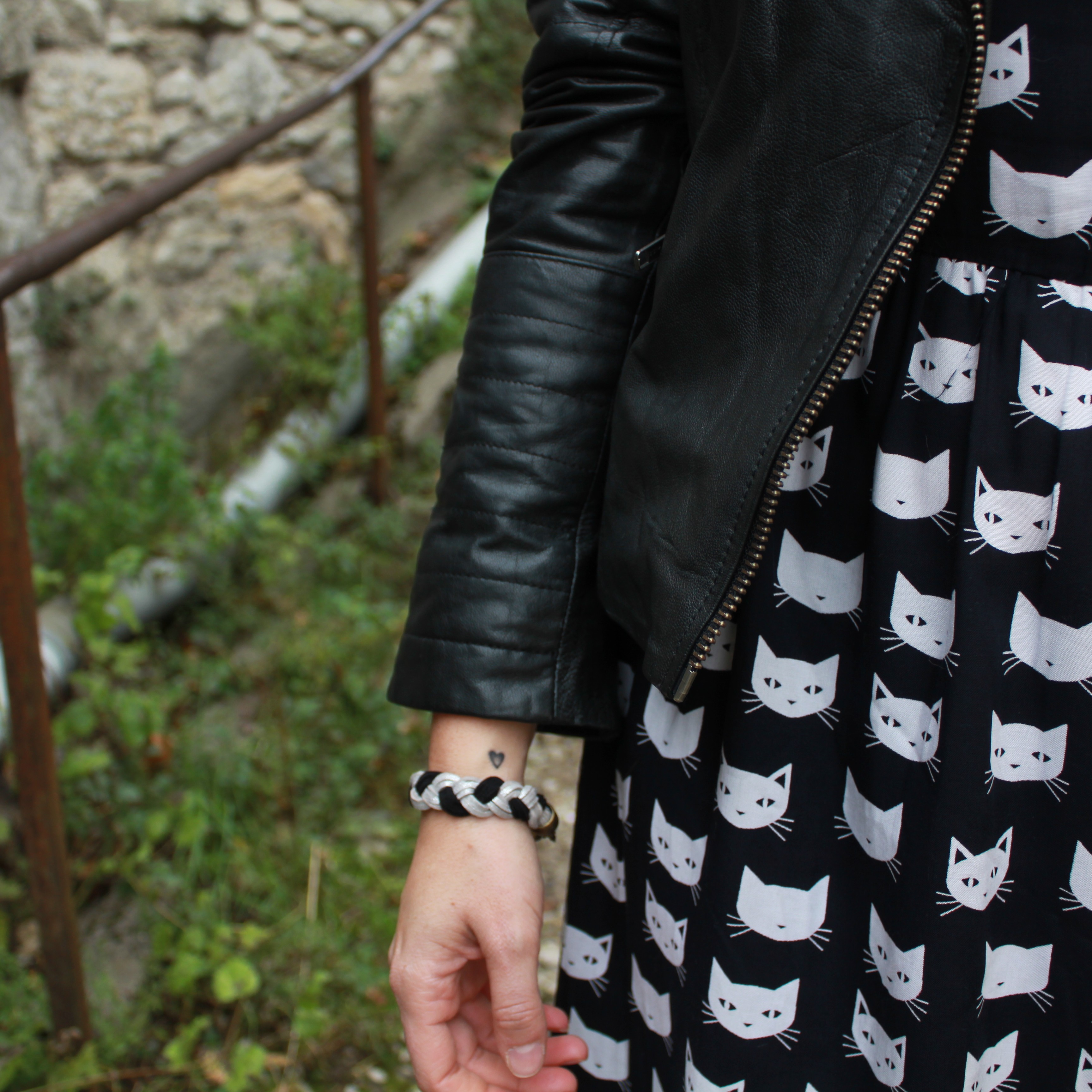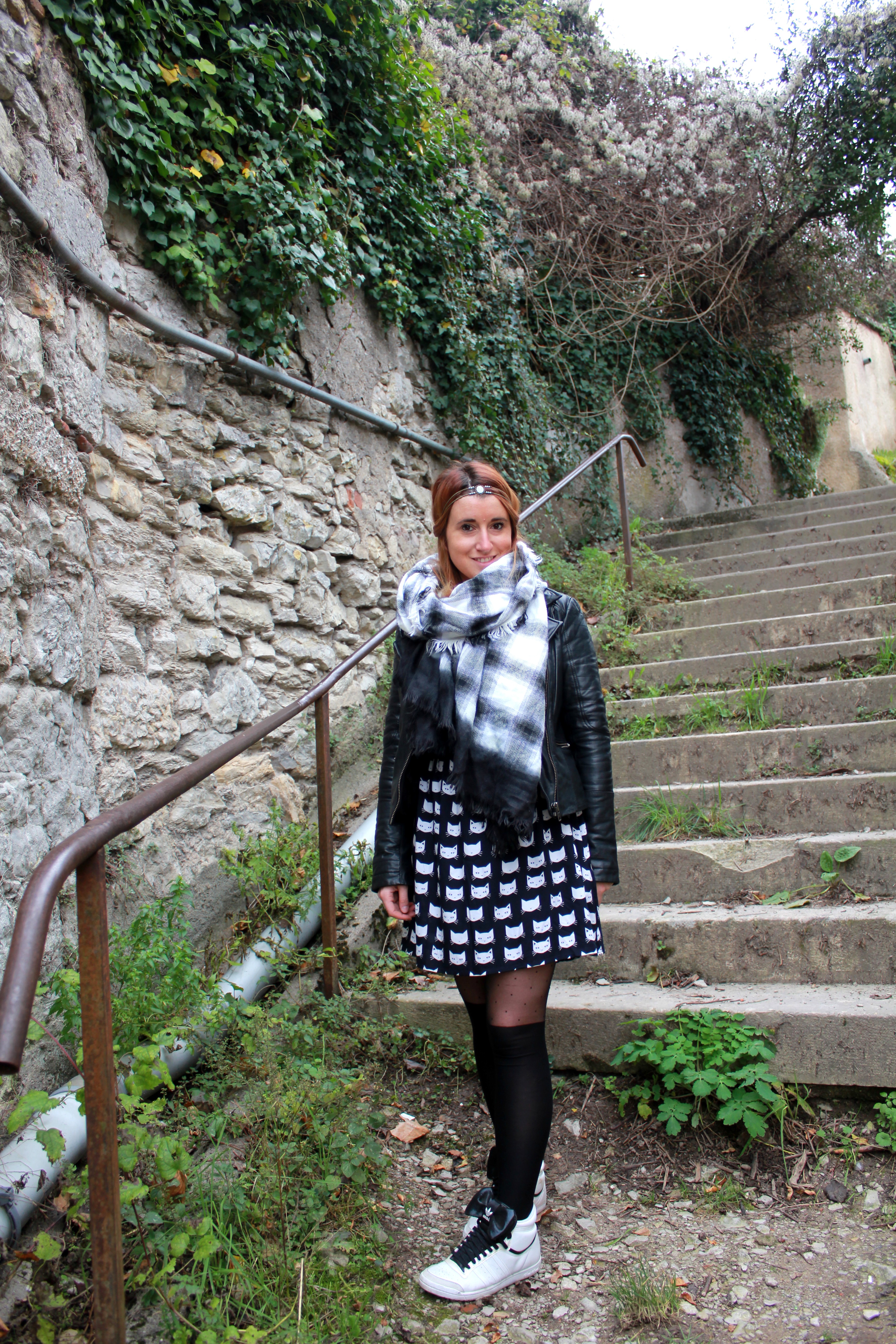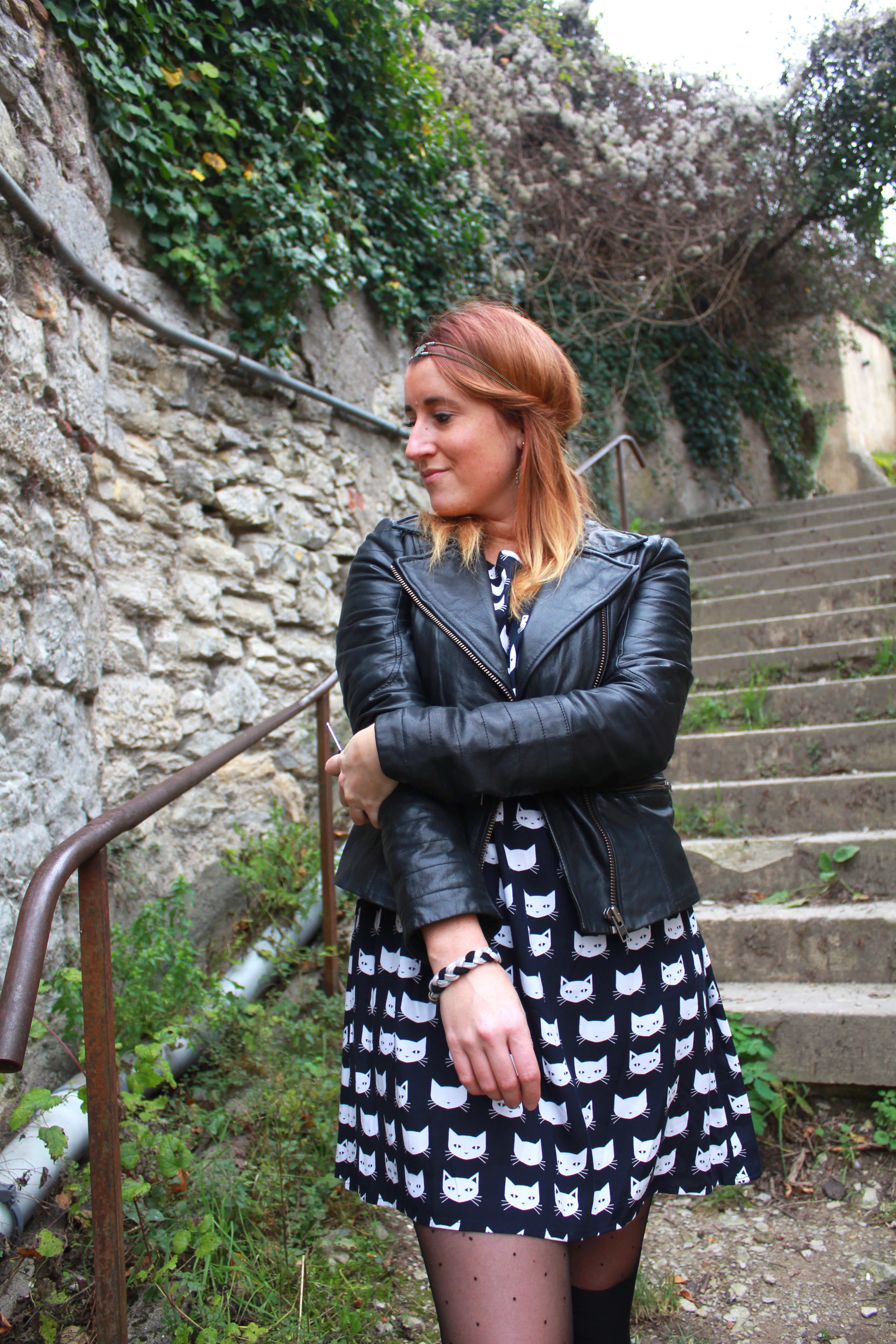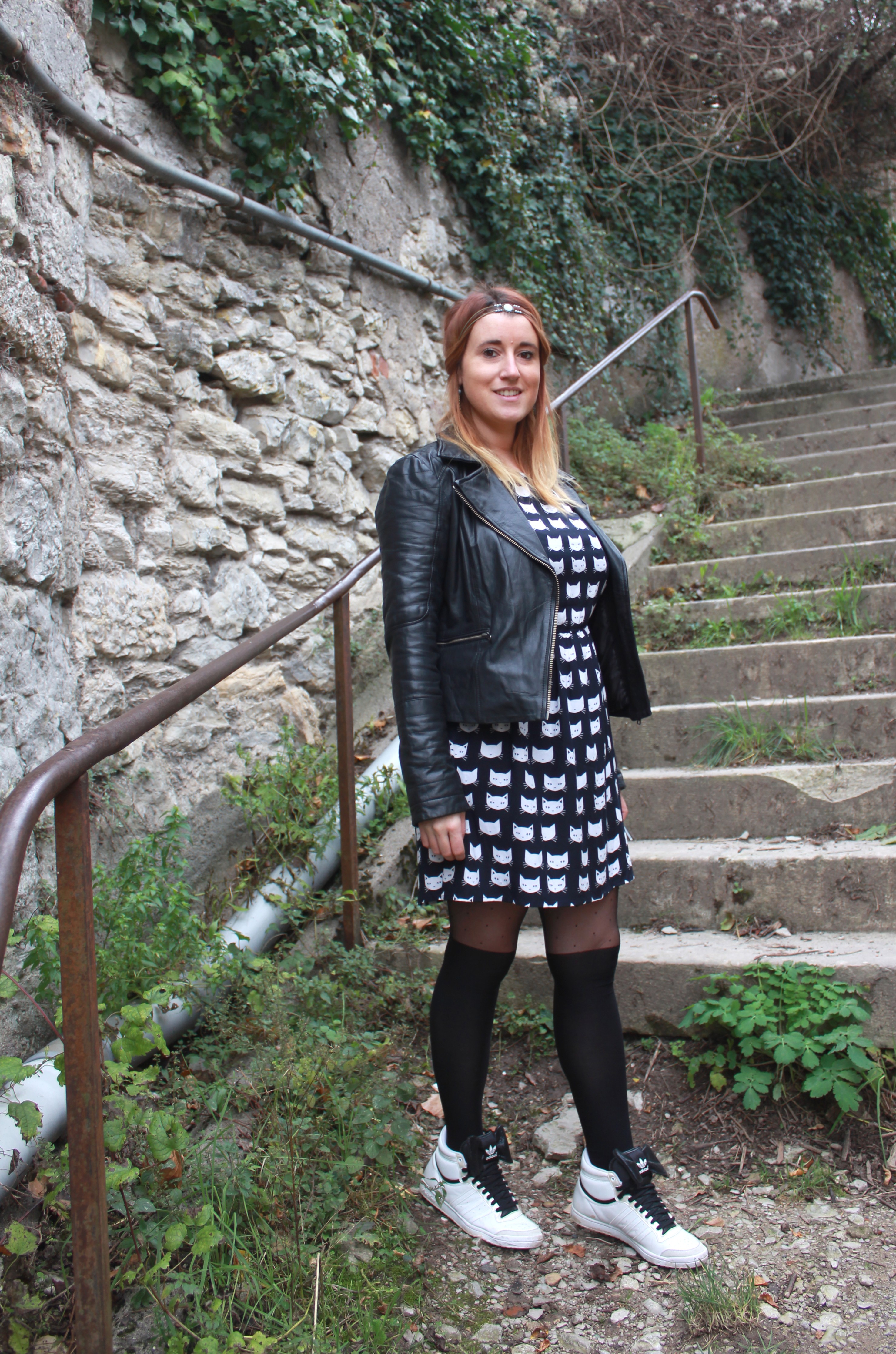 Bijoux: Mamzel Tutu / Perfecto: Vila chez le Boudoir de Maria / robe: Bizzbee / collants: gambettes box X Makemylemonade / baskets: Adidas (très vieilles presque vintage ^^)
