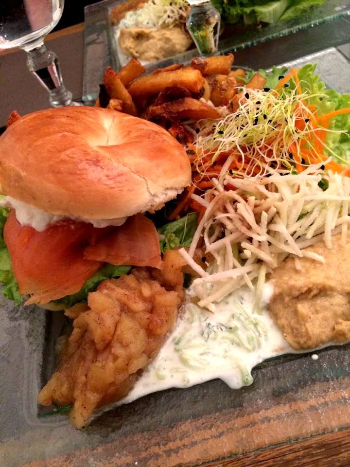 Pour vous remettre dans le contexte, j’ai déménagé sur Toulouse fin janvier et je prend plaisir à découvrir cette ville, à me perdre au détour des rues, à tester différents endroits gourmands avec mes ami(e)s. Du coup je tenais à partager avec vous 2 de mes coups de cœur culinaire. Le premier c’est un endroit qui fait surtout salon de thé avec des gâteaux tous plus alléchant les uns que les autres, le choix est vraiment difficile! Et à l’heure du déjeuner, vous pouvez manger salé. Je suis fan de leur bagels au saumon servit avec des frites, une petite compote de pomme à la cannelle, du houmous et une crème de concombre. Le pain, la sauce, le saumon, bref tout est délicieux. L’endroit aussi. La déco est délicatement rétro, chic juste ce qu’il faut. Bref, j’aime et vous l’aurez compris.
