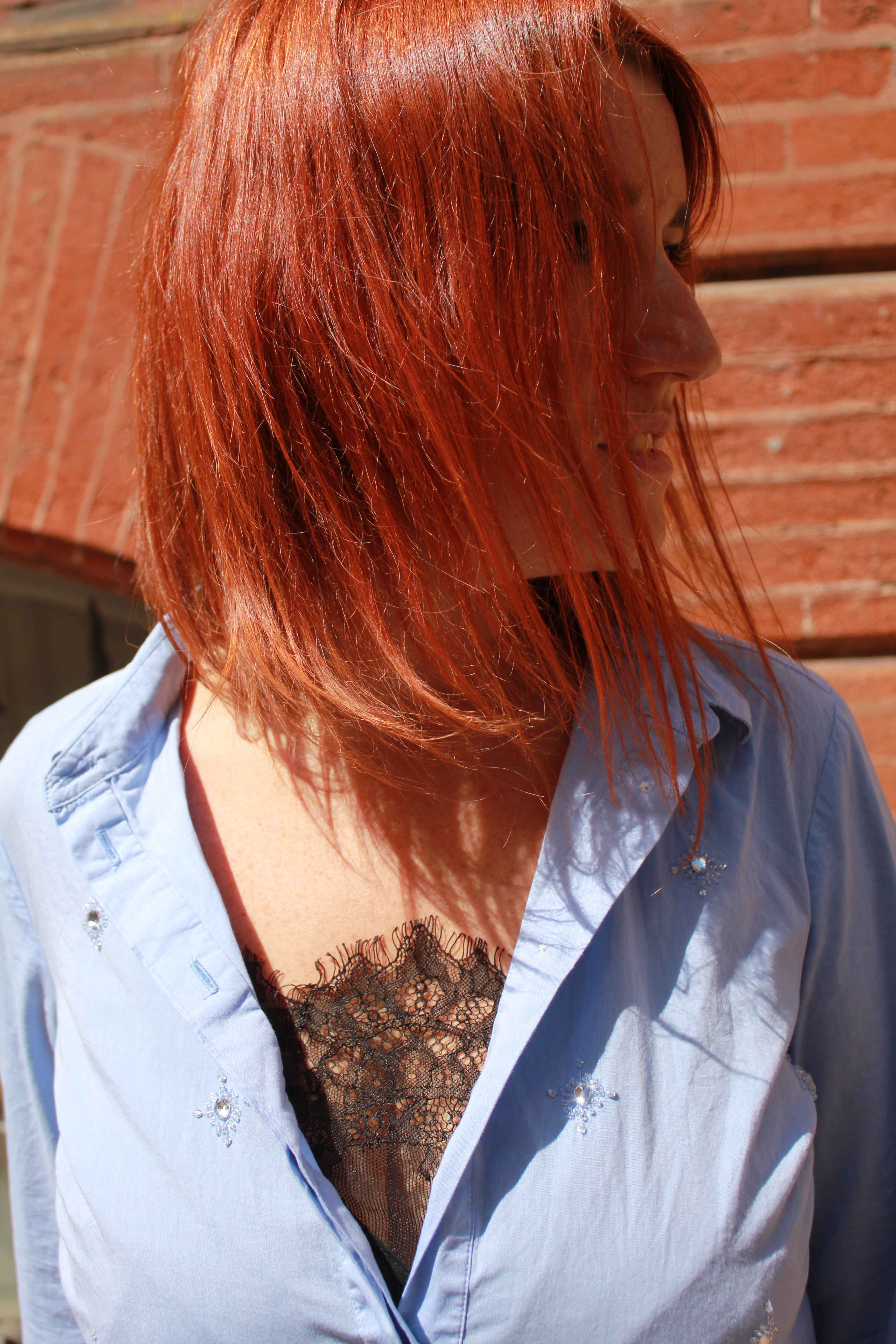 J’aime les détails qui font la différence. Comme aujourd’hui avec cette chemise brodée de petit strass et le débardeur en dentelle que j’ai glissé dessous. Associé à un short en jean un peu destroy et des baskets blanches, point trop n’en faut, je me sens bien.
