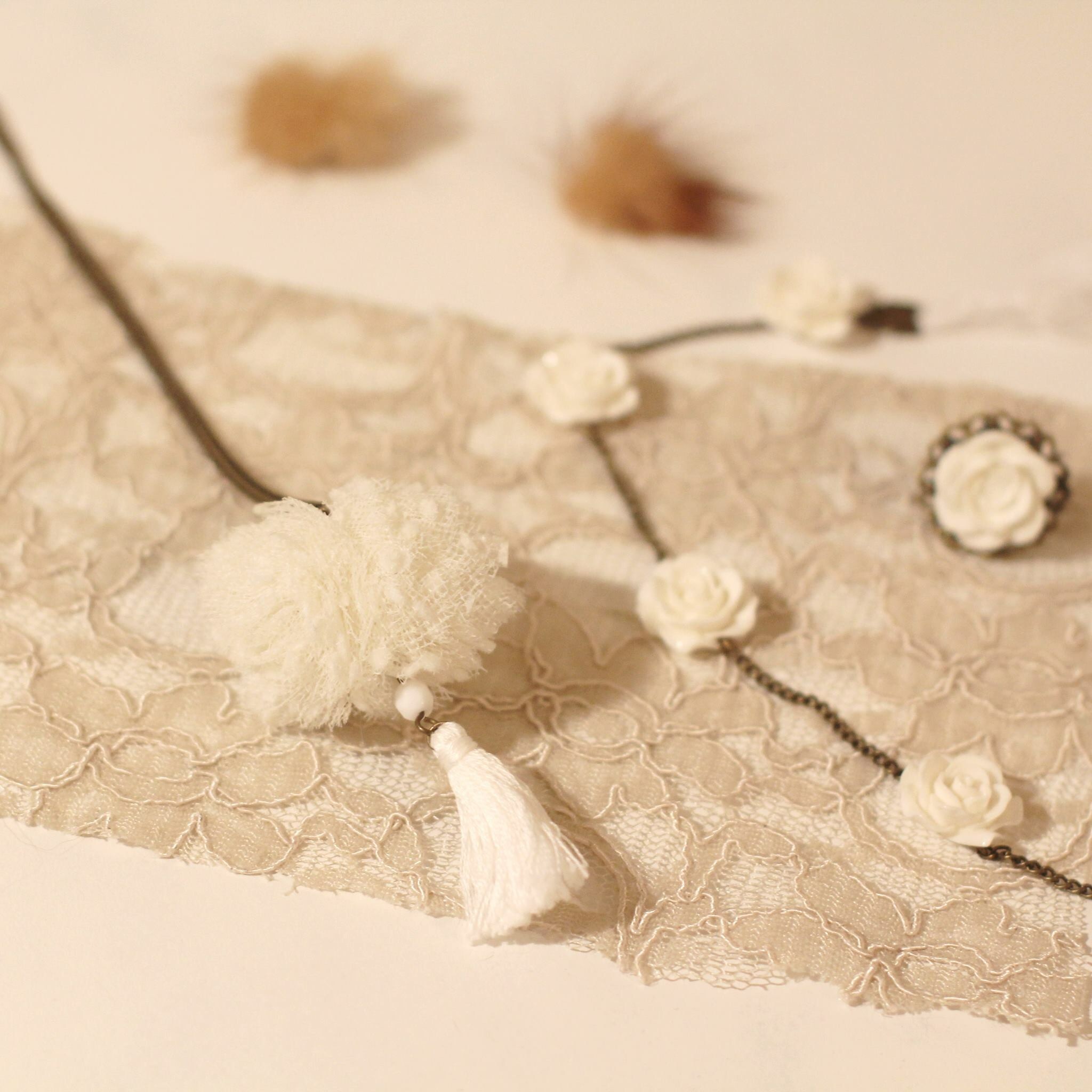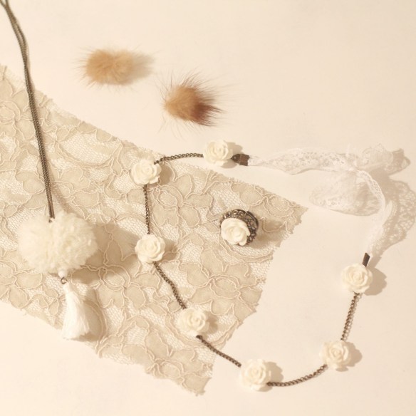 Cette semaine et uniquement ici, je vous propose de gagner ce sautoir pompon en tulle, ce headband couronne de fleurs et la bague assortie en suivant à la lettre la consigne suivante :