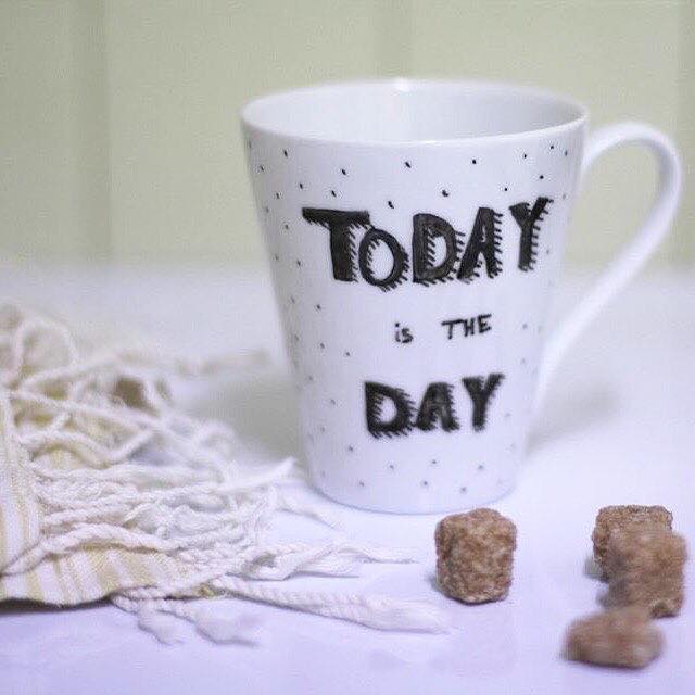 Pour commencer, vous pouvez customiser un mug en céramique. Vous trouverez tout le matériel nécessaire chez Cultura par exemple. Dessinez, écrivez une phrase qui vous représentera tous les deux, mixez des mots et des petits dessins, tout est imaginable. Le dernier que j’ai réalisé c’est celui ci.