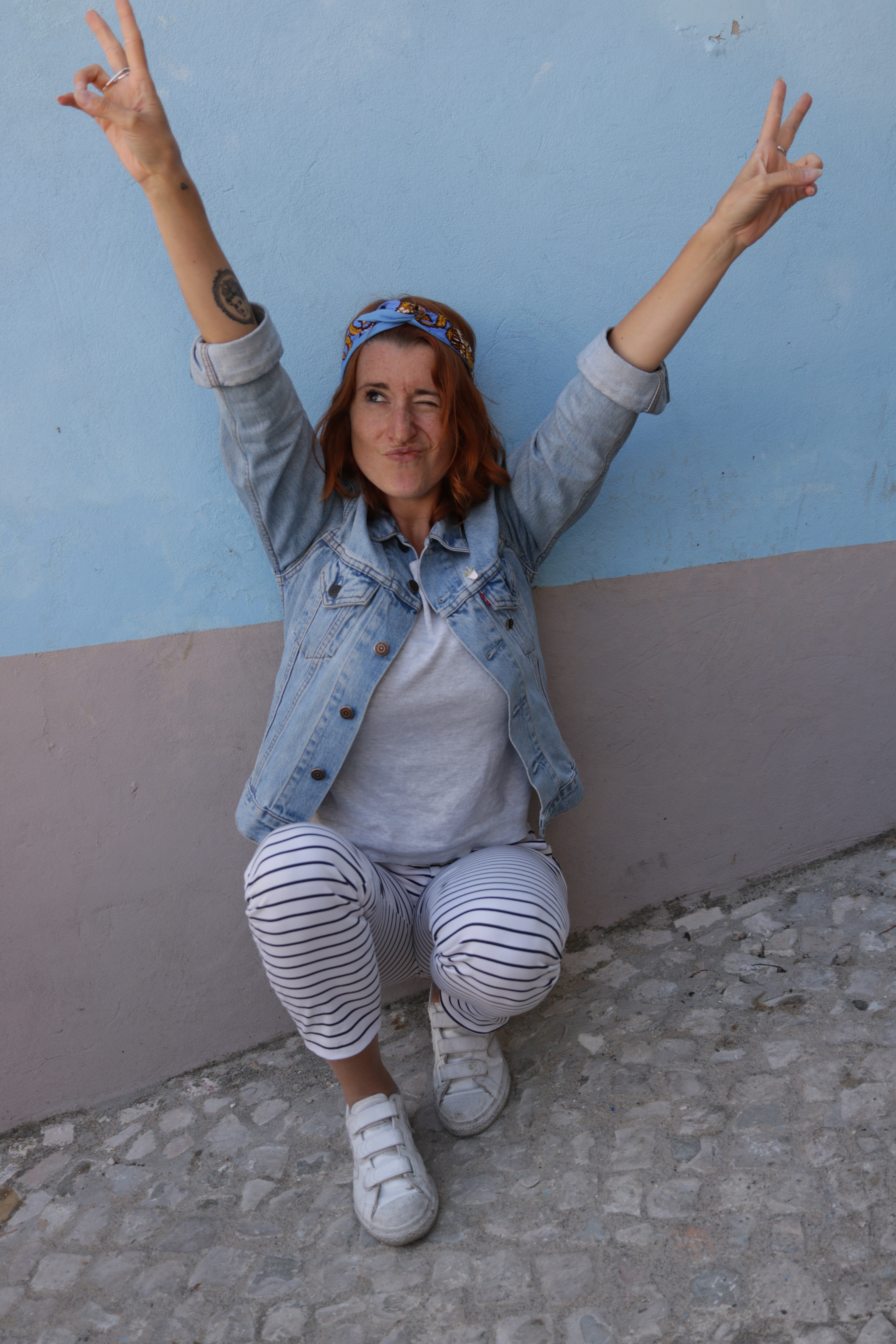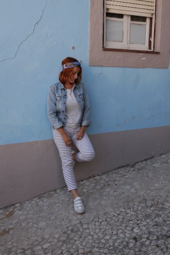 Me voilà avec un look photographié à Lisbonne. Comme je vous le disais dans l’article précédent, tous ces murs colorés m’ont rendue dingue. Chaque jour, nos tenues trouvaient un mur parfaitement assorti. Comme ce jour-là, au détour d’une rue, ce magnifique mur bleu. L’occasion rêvée pour mémoriser ma tenue et la partager avec vous.