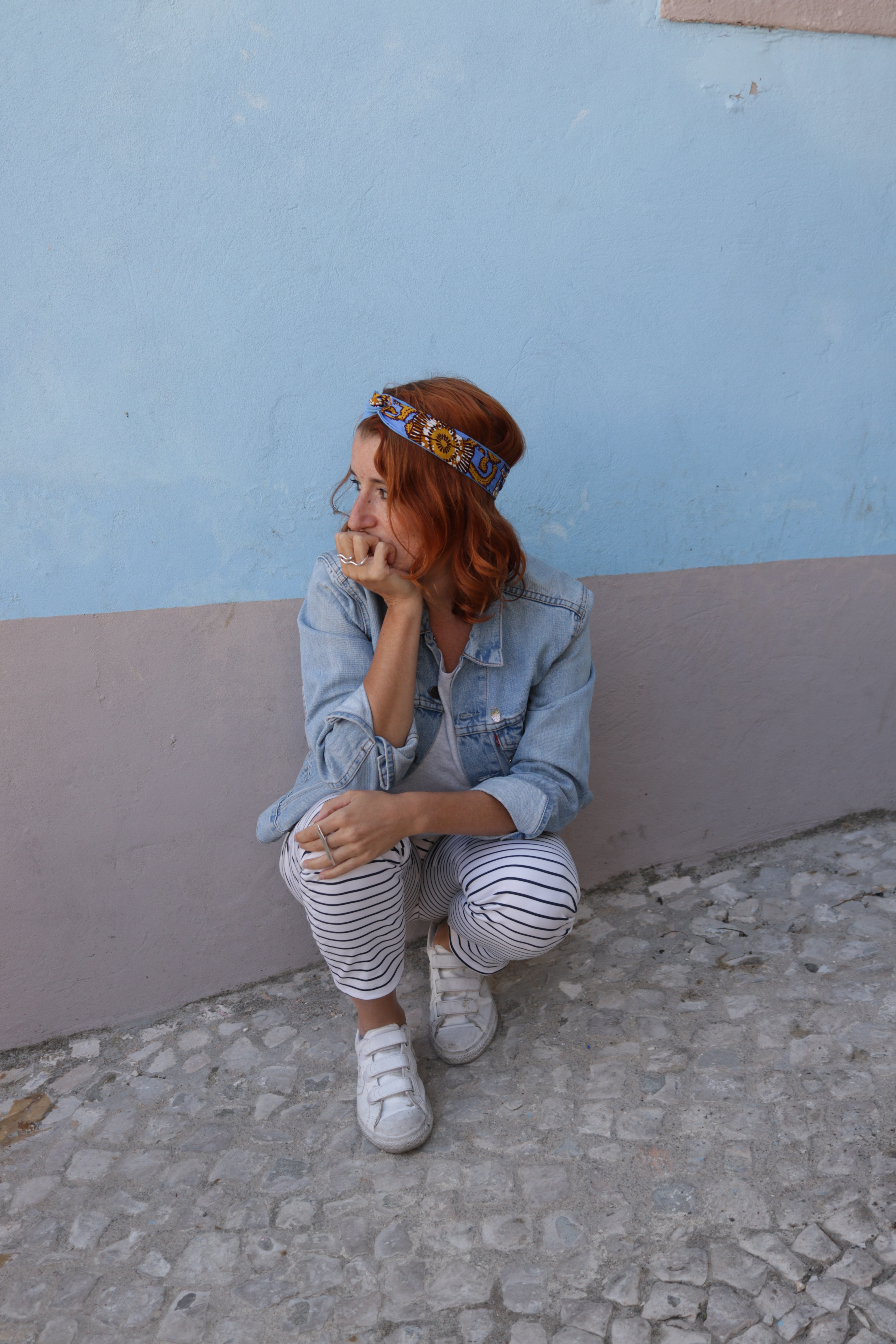 Cette fois-ci ce sont donc les rayures de mon pantalon qui ont cohabité avec le wax de mon headband. L’esprit aventurier de la marinière bretonne rencontre la folie et l’audace du tissu Africain.