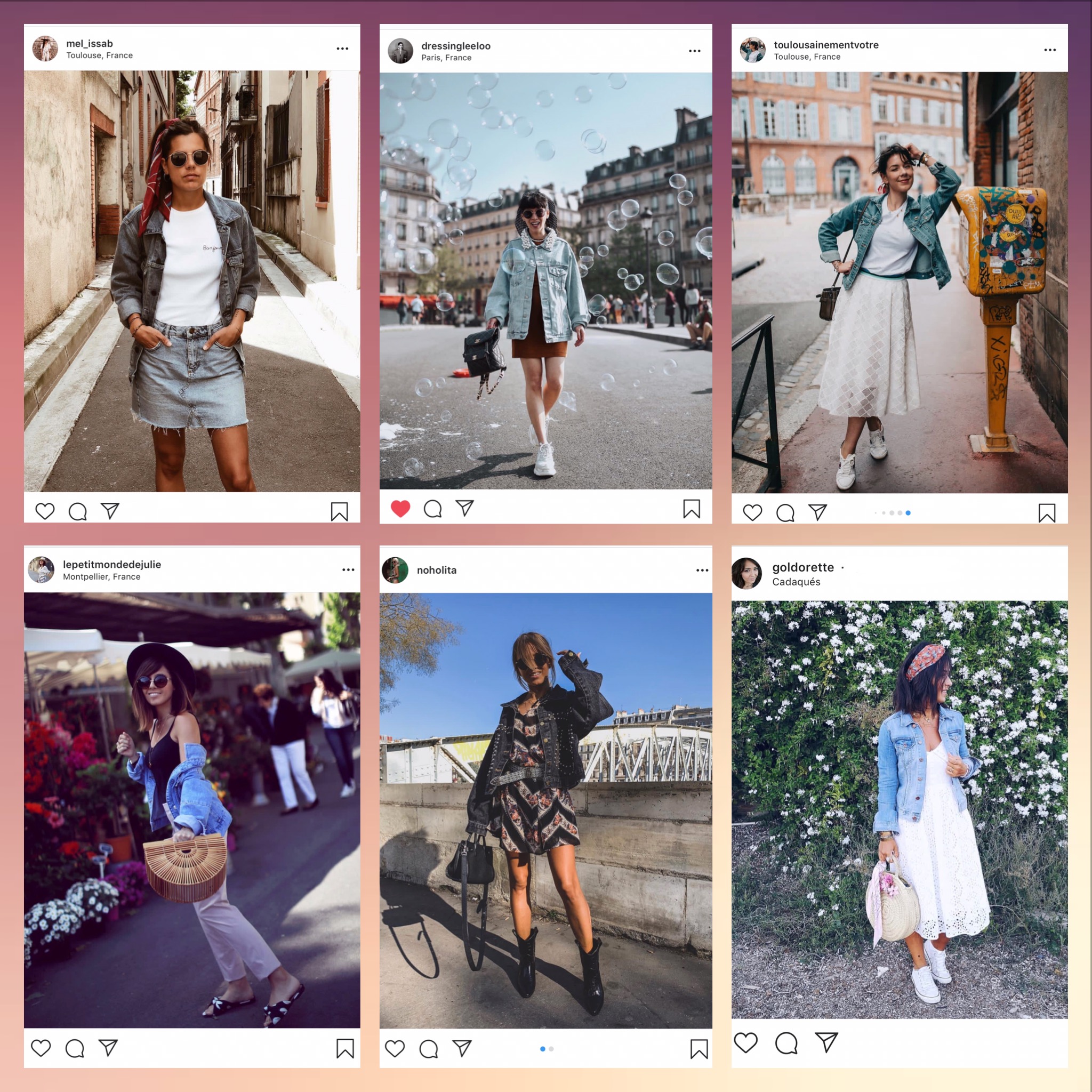 Je vous donne quelques idées mode pour porter votre veste en jean. C’est une liste non exhaustive, à vous ensuite de l’adapter au mieux à vos envies et vos différents styles.